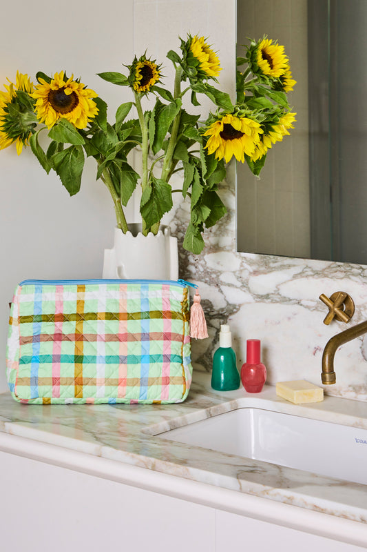 Candy Check Mint Quilted Toiletry Case