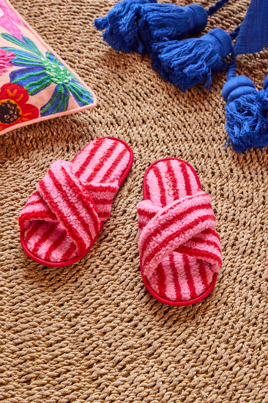 Candy Stripe Adult Sherpa Slippers